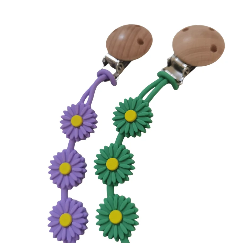 Wholesale Daisy Design Pacifier Clip – BPA-Free Silicone Teether Chain & Holder for Infants 3 Months+