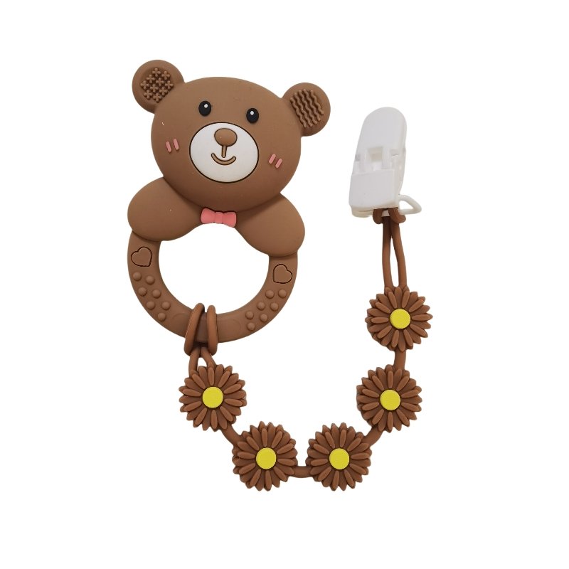 Yikang Bear Rattle Teether Set with Chain & Box – Multi-Color Food Grade Silicone Baby Gift for New Year/Christmas (0-12M)